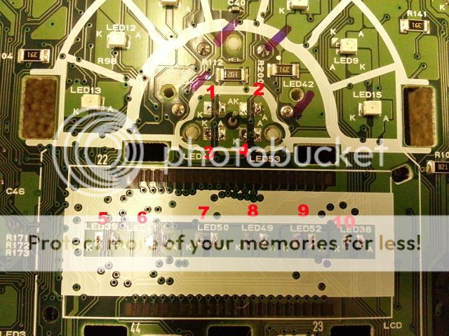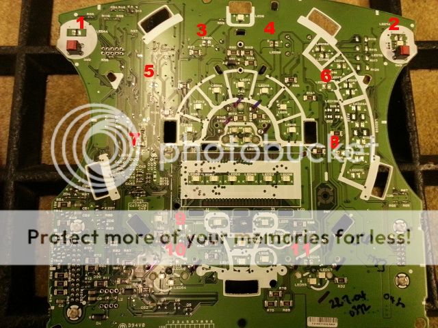 Now unclip the white plastic from the board, turn it over and you will see the smt`s, I have marked the ones I wanted to change in the picture